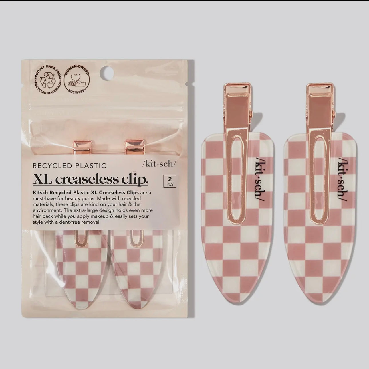 Kitsch Recycled Plastic XL Creaseless Clips are a must-have for beauty gurus. Made with recycled materials, these clips are kind on your hair & the environment. -Keeps flyaways & bangs out of your face during makeup application